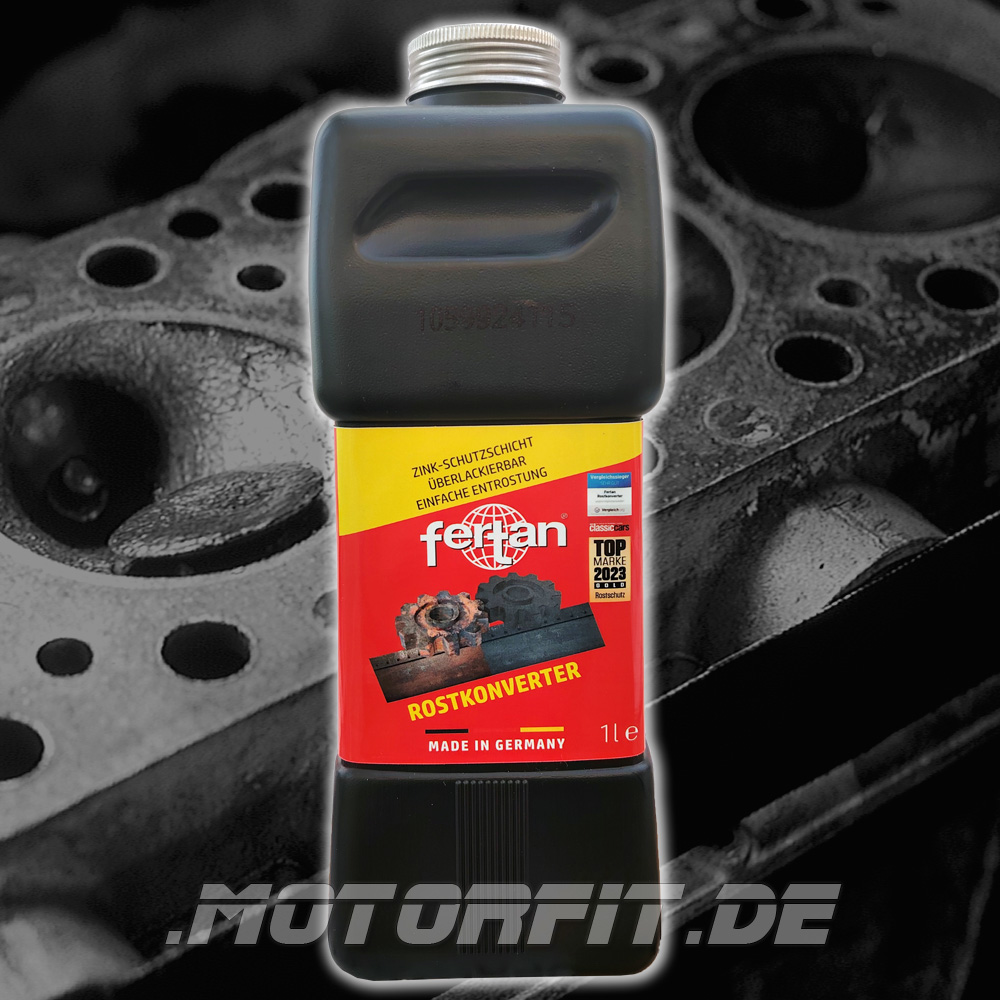 FERTAN Rostumwandler ist ein hochwirksames Produkt gegen Rost. Die Rostschicht wird chemisch aufgelöst und das behandelte Metall zusätzlich durch eine neue Metallverbindung gegen neuen Rost geschützt. FERTAN ist eine dunkle Flüssigkeit, welche durch ihre enorme Kriechfähigkeit auch unter alte Lackschichten dringt und dabei die Korrosion vollständig beseitigt. FERTAN nicht einnehmen und Sicherheitshinweise beachten. Im verschlossenen Originalbehälter unbegrenzt haltbar bei frostfreier Lagerung Füllhöhe der Dose technisch bedingt.