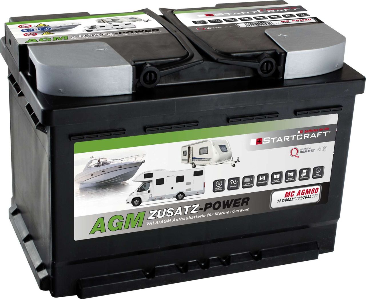 Startcraft 80A AGM Aufbaubatterie DIN-Format Batterie 12V / 80Ah L 278 B 175 H 190