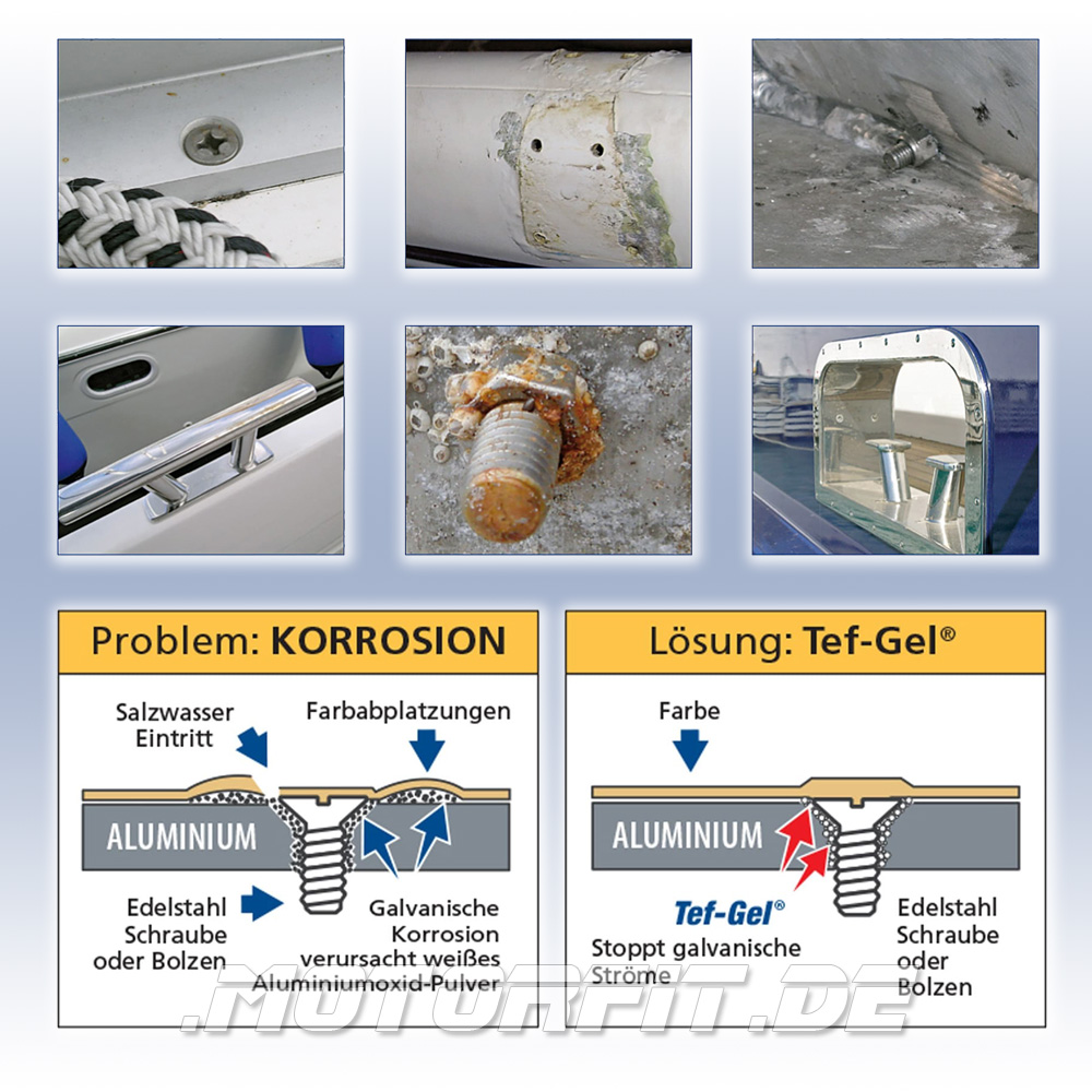 Das von der Firma TIKAL MARINE SYSTEMS in Deutschland hergestellte TIKAL TEF-GEL ist eine wasserfeste, auf PTFE basierende Paste, die universell eingesetzt werden kann. Es verhindert das Aufblühen von Metall, besonders unterschiedliche Metalle, und schützt zuverlässig vor Korrosion durch galvanische Ströme zwischen unterschiedlichen Metallarten.PTFE Paste, PTFE Schmiermittel. 750001 T500