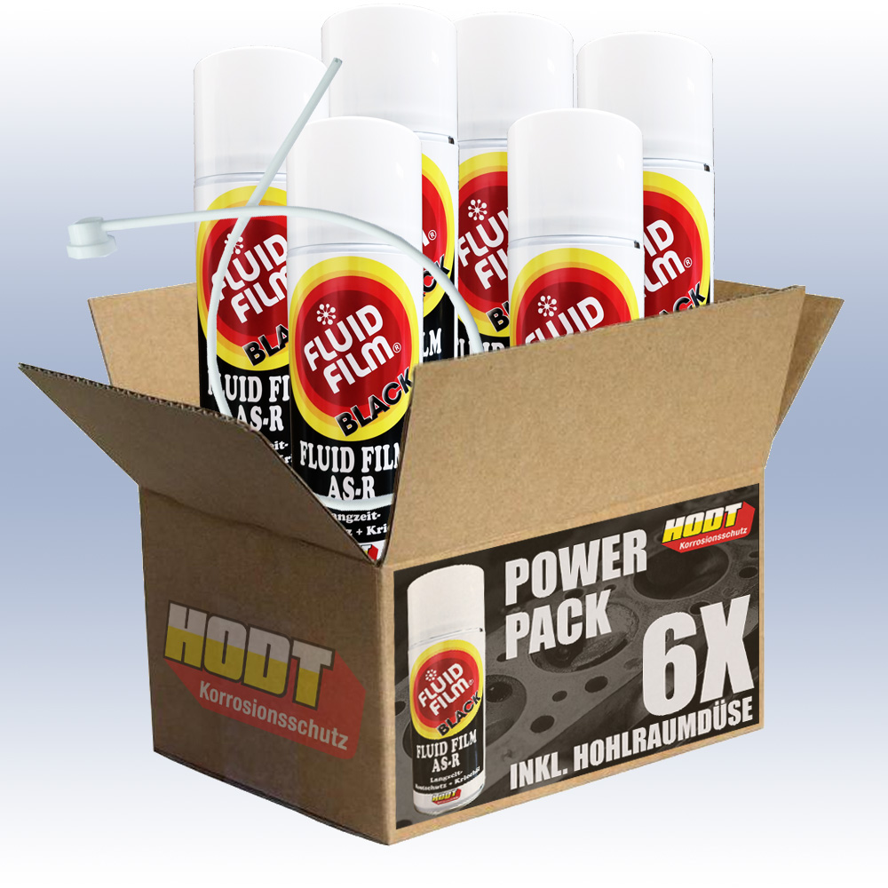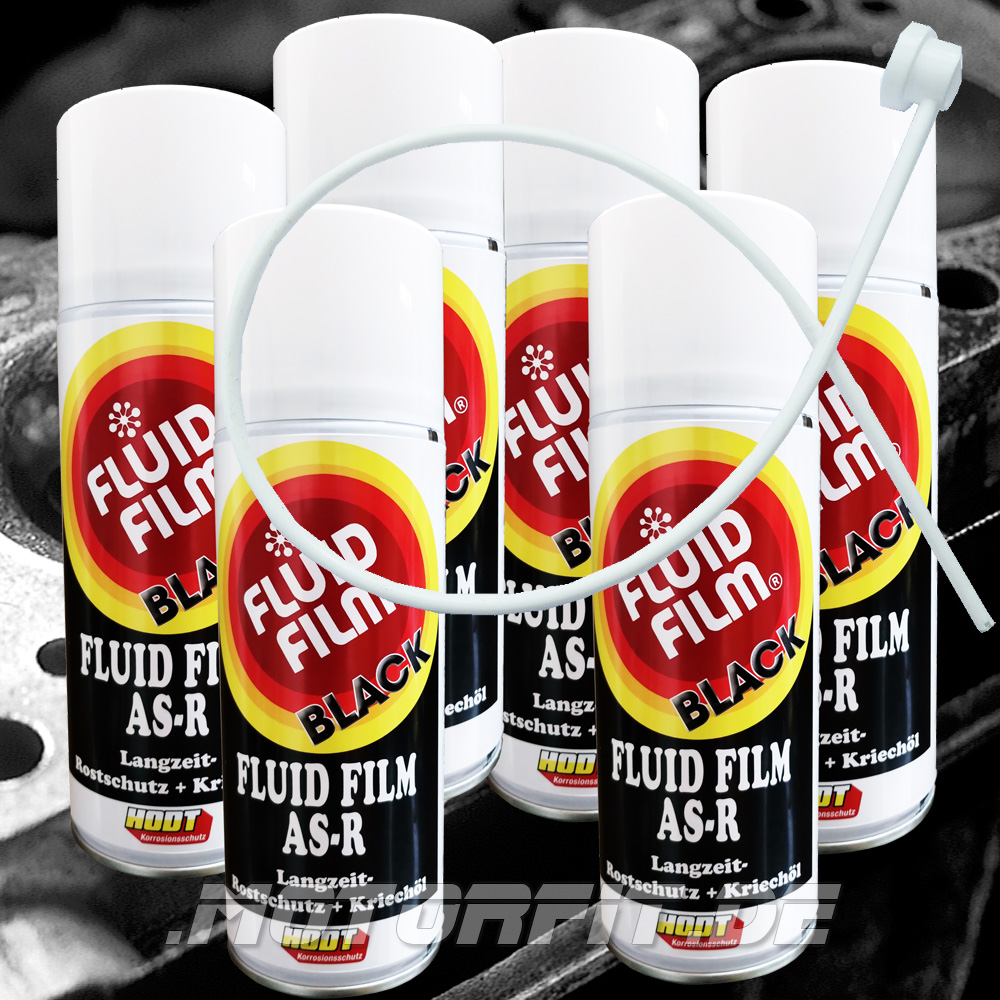 HODT Fluid Film AS-R BLACK - 6x 400ml Spraydose Hochwirksamer Rostschutz für Marine, Wohnmobile, Youngtimer, klassische Fahrzeuge (classic Cars) inkl. Hohlraum-Sonde (60cm lang) mit Rundumdüse