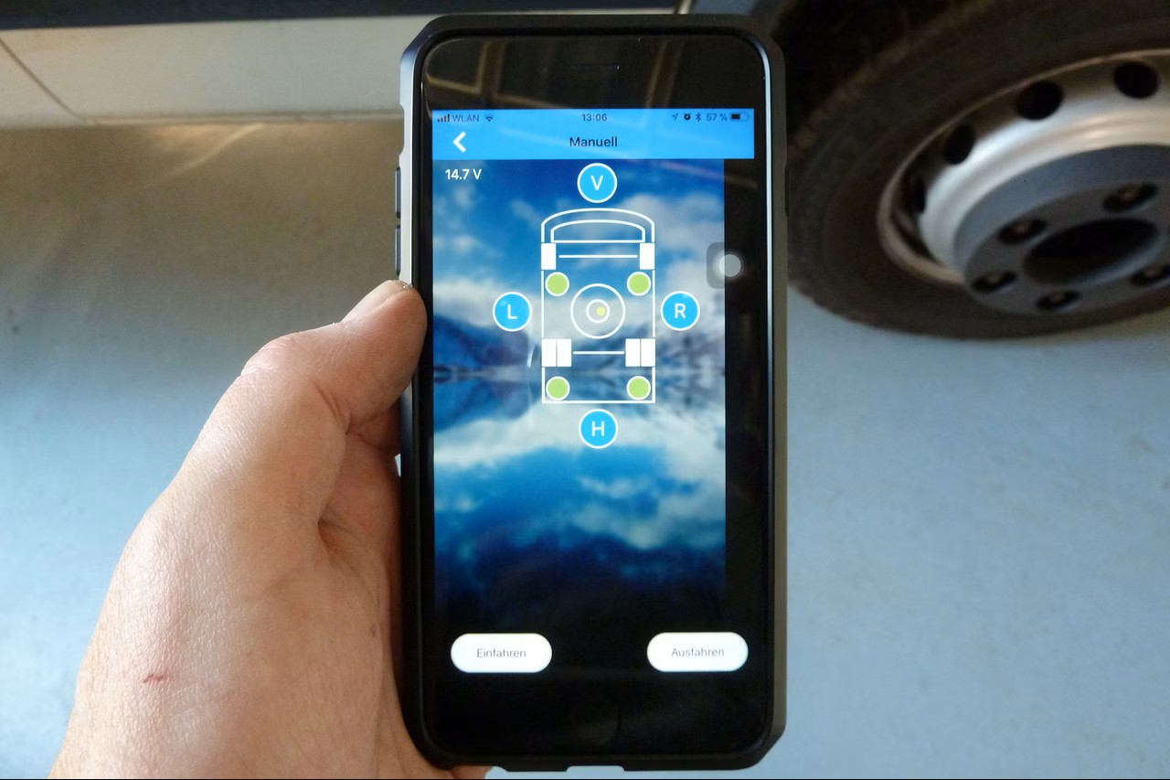 Mit einem Knopfdruck stellt das System das Fahrzeug vollautomatisch in die Waagerechte.